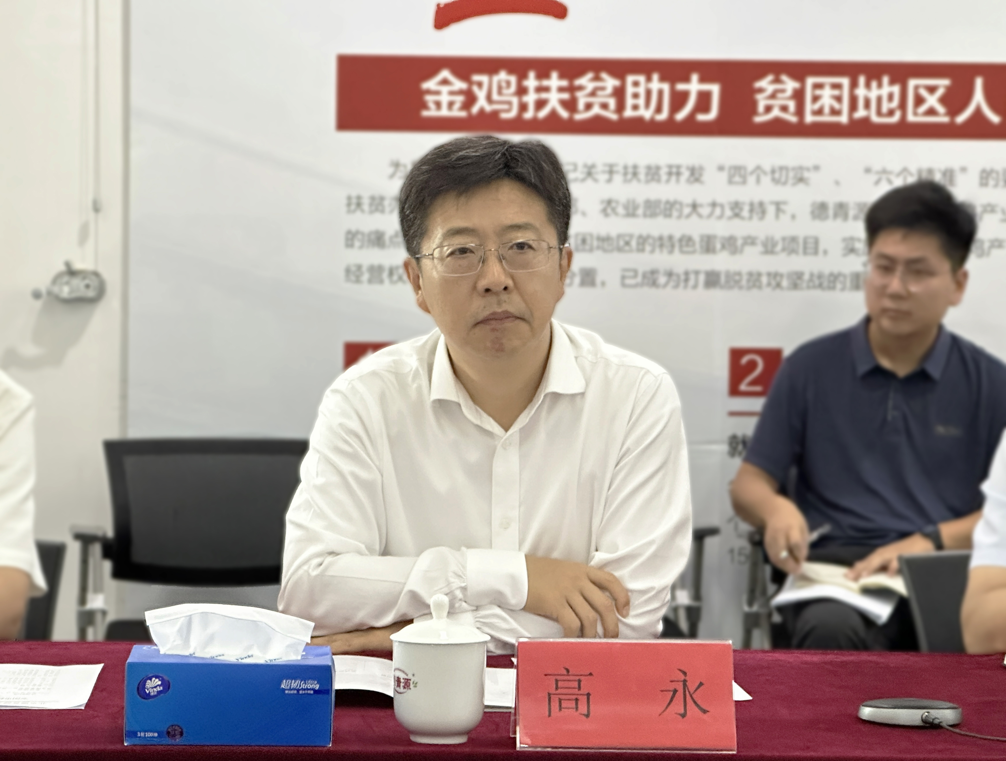 安陽市辦公室、湯陰縣商務(wù)局、縣畜牧中心等主要領(lǐng)導(dǎo);富安基金董事長(zhǎng)趙巖;德青源總裁宣明海、董事會(huì)秘書朱艷麗及相關(guān)部門負(fù)責(zé)人參加會(huì)議